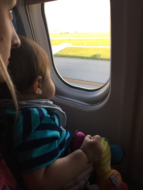 My husband booked our flights around Ryder’s feeding and nap time which worked out perfectly. Before the plane took off I gave him a bottle. This helped with the pressure and it didn’t seem to bother his ears. After his bottle he fell asleep. I brought his favorite blanket and wrapped him in it because the plane was a little cold. He napped until about 15 minutes before we landed. He did wake up confused and cried a little because he didn’t know where he was. But we opened the sun shade of the window so he could see out and that did the trick! He looked out the window till we landed.